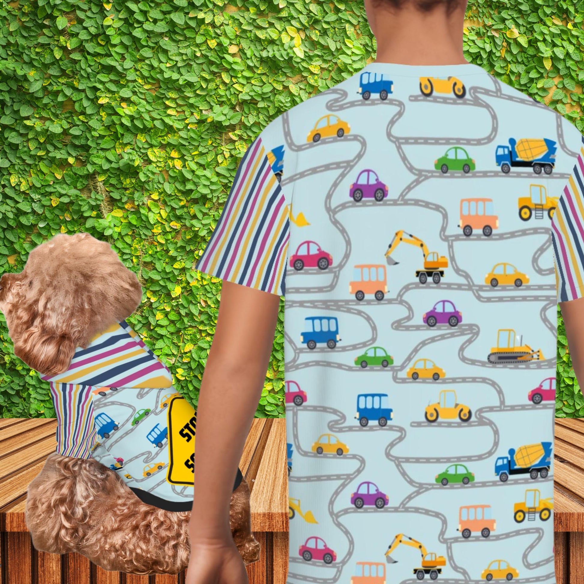 Cute Matching Set for Kids and Dogs, Fun Car Theme Kids T-Shirt , school Shirt, road trip fun