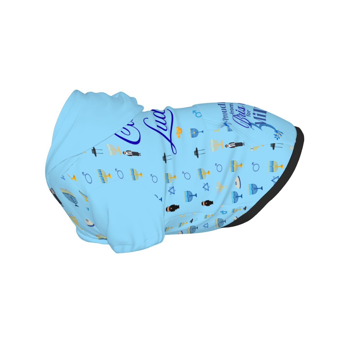 - Dress your pup in style this Hanukkah with our unique dog hoodie featuring an eye-catching ugly sweater design! Perfect for the festive season, this adorable garment is designed for any male Jew who wants to show off their holiday spirit. It’s a fun way to celebrate while being exempt from bris milah traditions for 3 millennia. Let your furry friend join in the festivities with this one-of-a-kind sweater that combines comfort, style, and holiday cheer. A must-have for every dog lover!