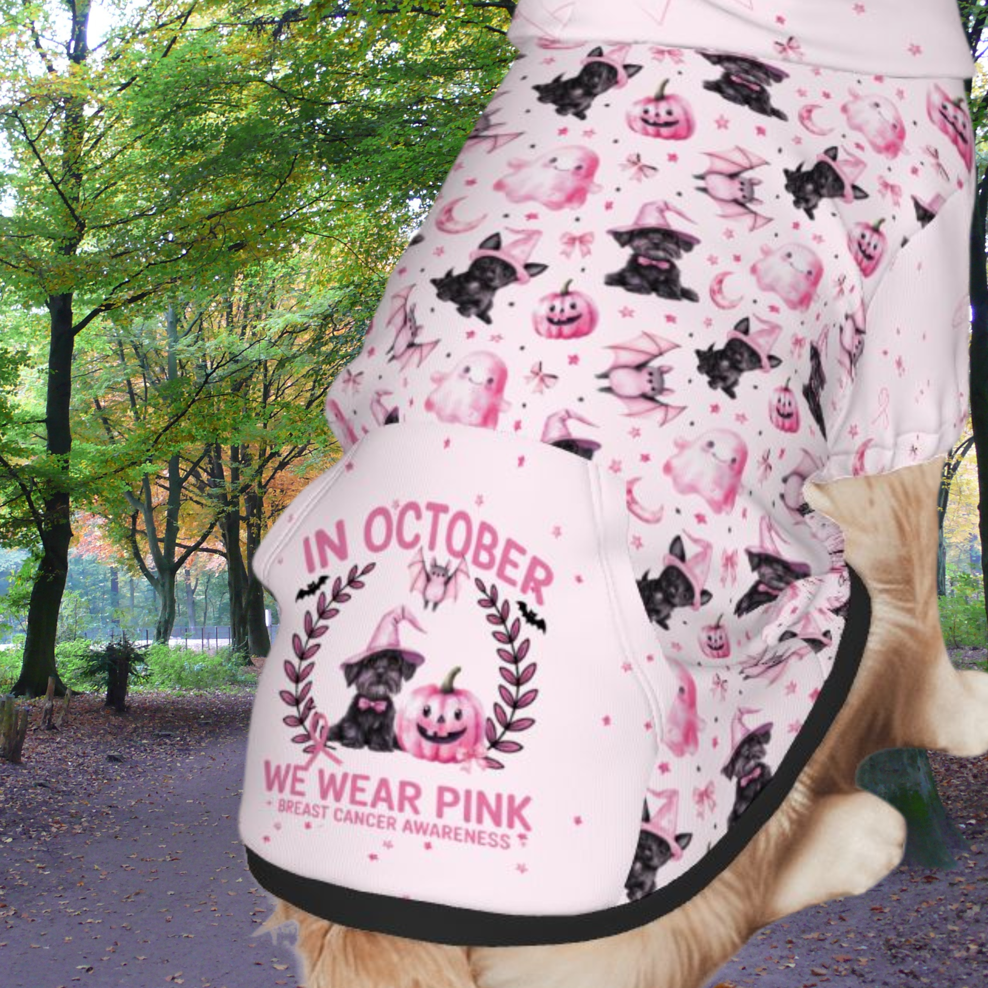 IN October We wear Pink, Breast Cancer Awareness Dog Hoodie - Pink Halloween Pet Costume, Ghosts, Bats, Cute Dog Outfit