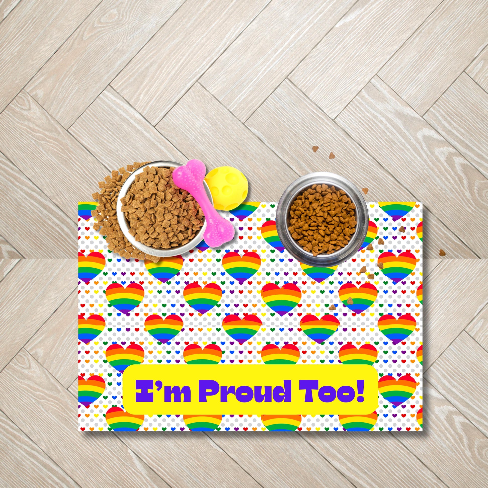 Add a touch of pride to feeding time with this vibrant dog food mat! Perfect for giving your furry friend a stylish dining area while keeping floors clean. Show off your love for your pet and pride with this unique accessory.