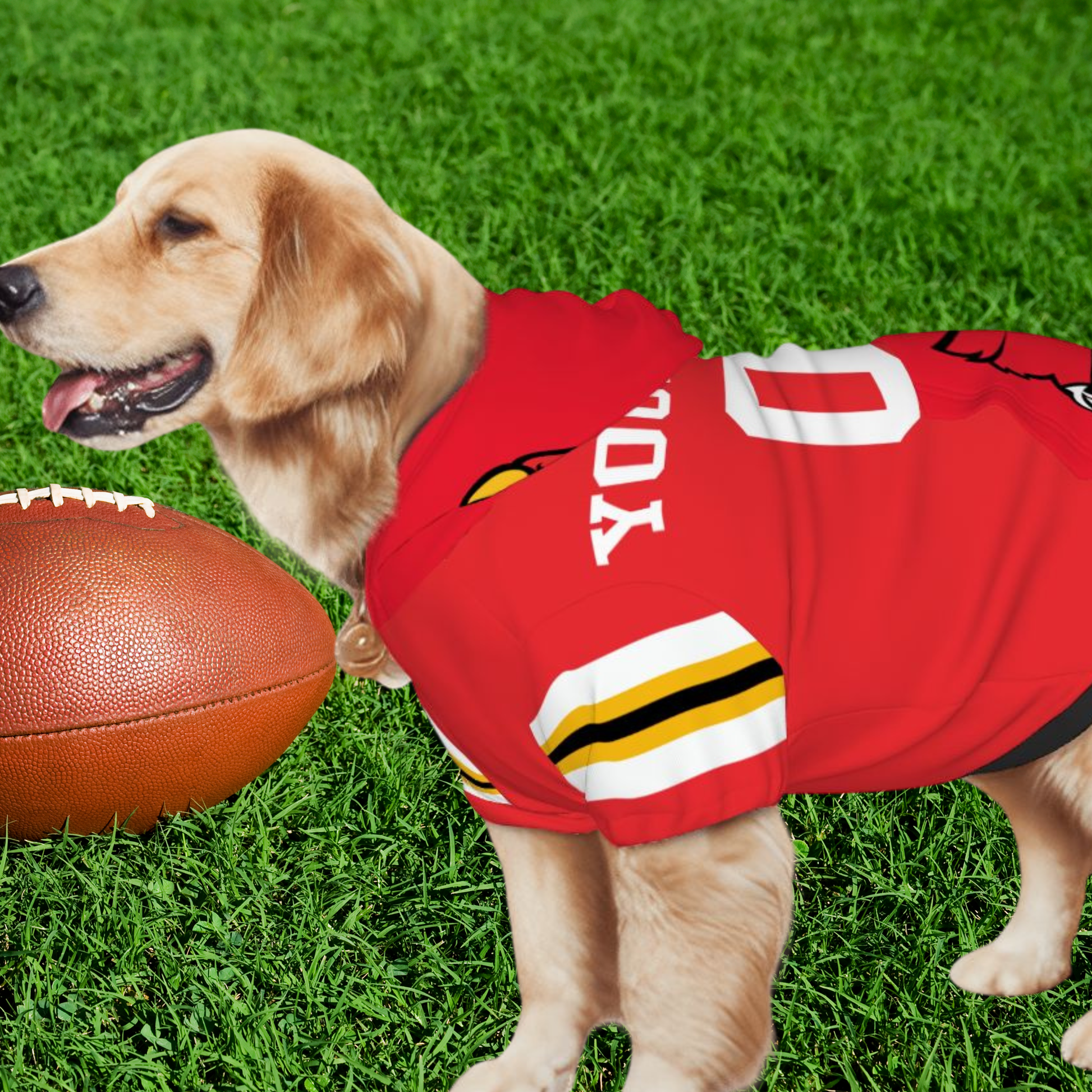 Show your team spirit with our adorable University of Louisville Cardinals basketball team hoodie for your furry friend! Designed to resemble a jersey, this stylish hoodie is perfect for both dogs and cats. Whether you choose to personalize it with your pet's name or go with the standard CARDINALS design, your pet will be ready to cheer on their favorite team in comfort and style. Make game days extra special with this unique piece! Perfect for loyal fans and their four-legged companions!