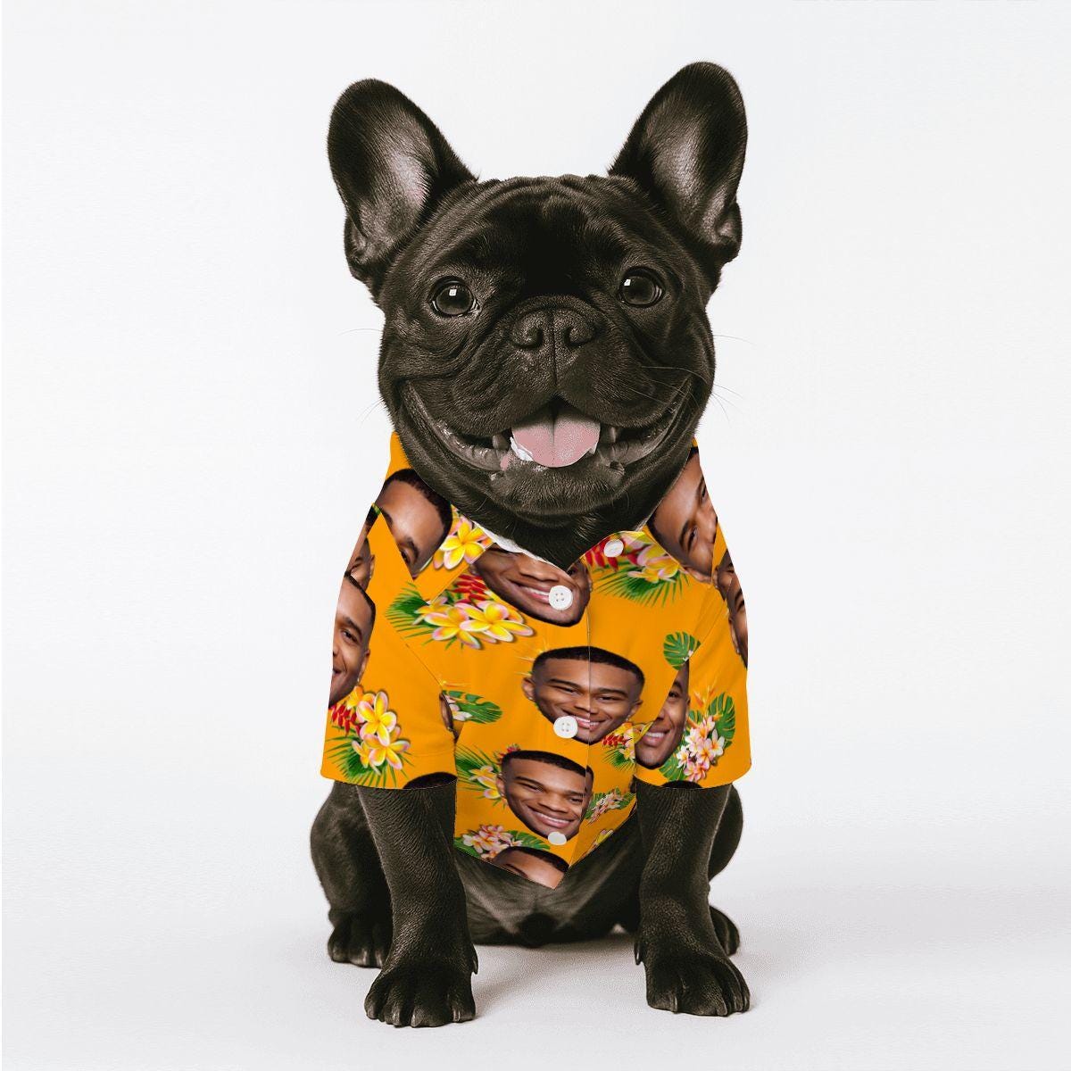 Make a bold statement with our Hawaiian shirt pet and human matching set! Perfect for twinning with your furry friend. Adorned with charming pictures of heads on the shirts, these outfits are sure to turn heads wherever you go. Embrace the fun and style of coordinated dressing with this unique ensemble!