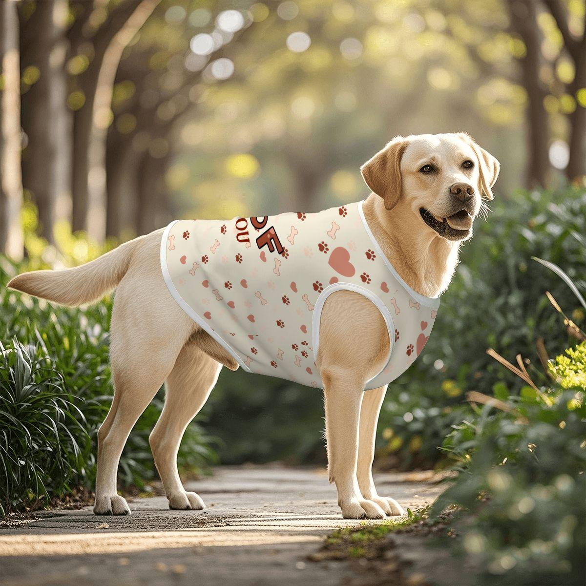Keep your furry friend stylish and adorable with this cute Dog Tank Top! The vibrant colors and fun 'I Woof You' design will make your pup stand out on walks or playdates. Made with comfortable material for all-day wear. A must-have for any doggy fashionista! 🐾 #dogtanktop #dogfashion #petclothing